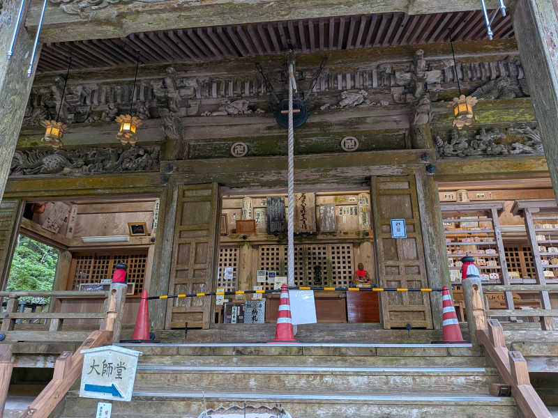 実際に撞けるのですが、先にお参りを済ませていると『出鐘』や『戻り鐘』などと言って、お遍路でやってはいけないことの1つになります.鐘を撞きたい場合はロープウェイからでて左に進んで、この鐘楼門はら入りましょう.太龍寺(21番)たいりゅうじ