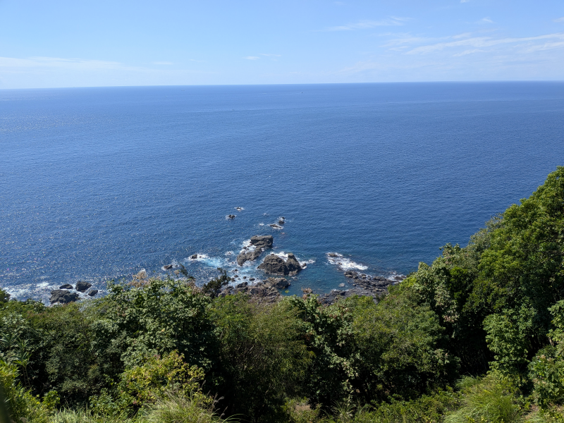 24番 最御崎寺は山頂にあり、25番 津照寺に向かう際は室戸スカイランという道を下り、土佐東街道という海沿いの道に戻ります.海沿いの道との交差する箇所は複雑な作りになっているので、ほとんどの方がしっかり一時停止されると思います.最御崎寺(24番)ほつみさきじ
