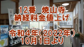 令和4年(2022年)10月1日より値上げ令和4年(2022年)10月1日より12番焼山寺の納経料金値上げされています<納経料金改定のお知らせ>軸:1,000円納経帳:500円白衣:300円駐車場も数年前から500円になっています.おそらく...
